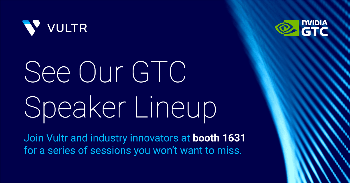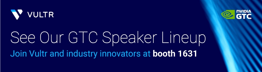 Vultr is excited to announce our participation in this year’s NVIDIA GTC, where innovators, builders, and AI leaders from around the world will gather to explore what’s next in accelerated computing and artificial intelligence.