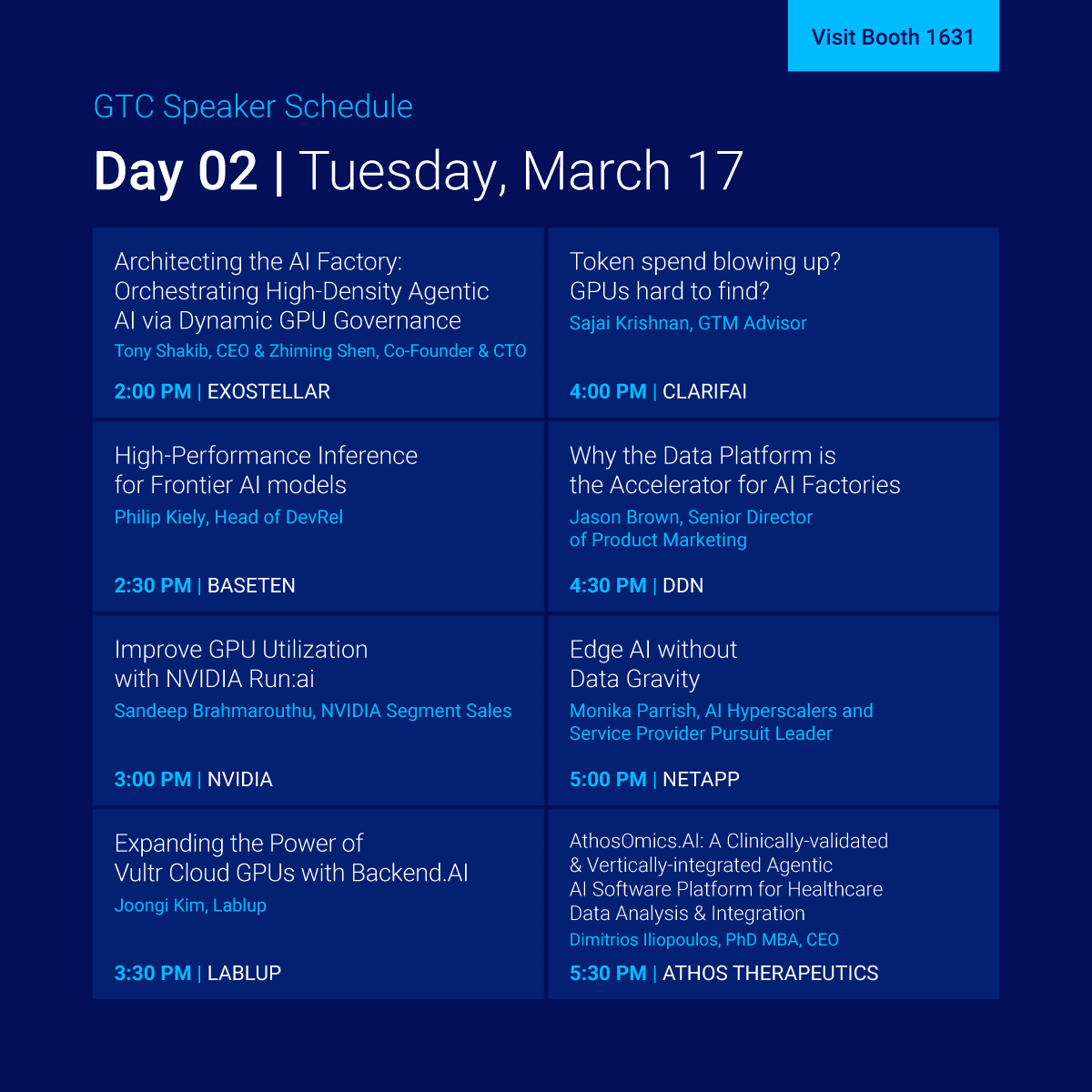 Here’s the full schedule of Vultr speakers at NVIDIA GTC 2026: